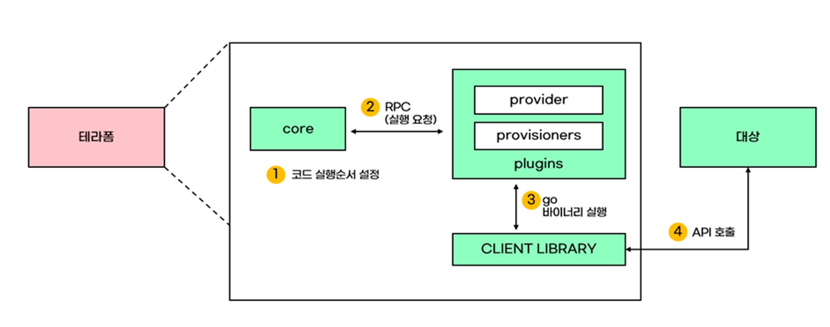 2. 1.의 순서대로 테라폼 코어 -> 플러그인(프로바이더, 프로비저너) 에게 RPC로 실행을 요청한다