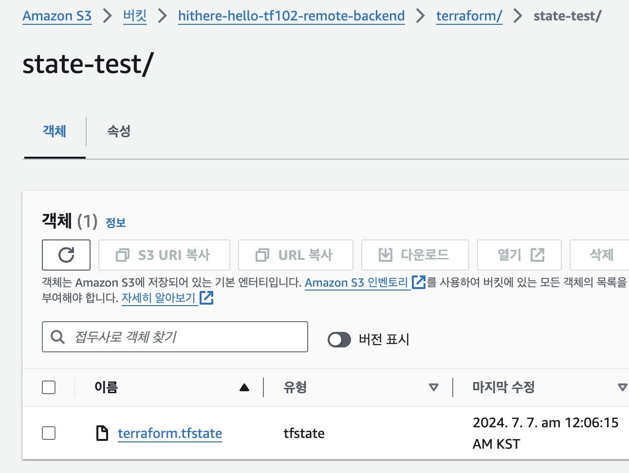 아무튼 테라폼 리모트 백엔드에서 사용할 스토리지는 잘 배포되었다 (hithere-hello-tf102-remote-backend)