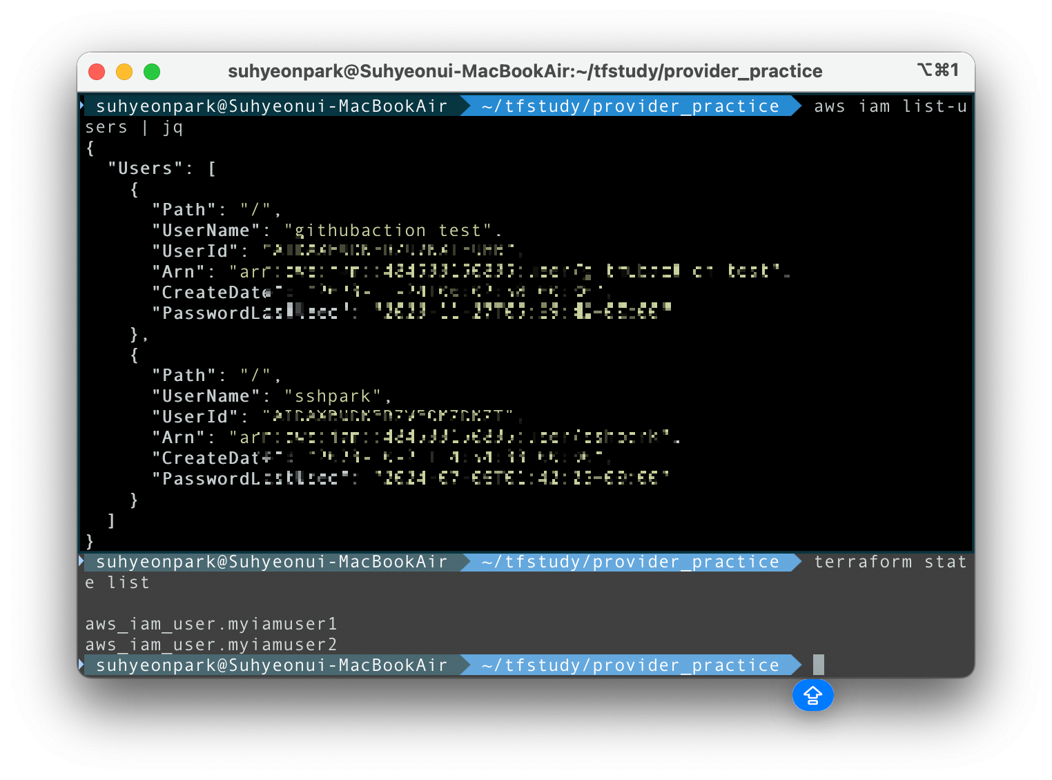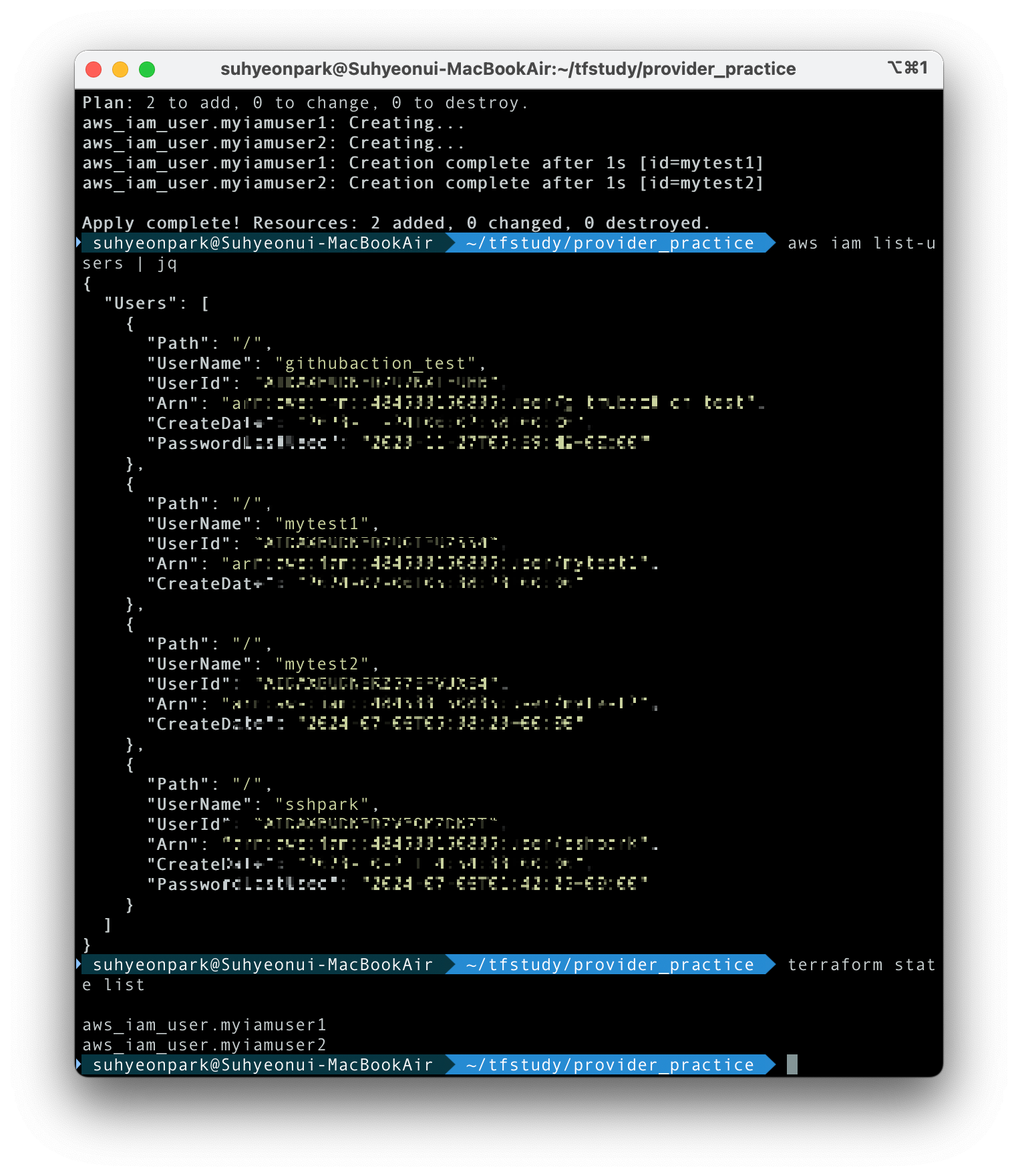 2명의 iam user 가 신규 배포되었음을 확인할 수 있다