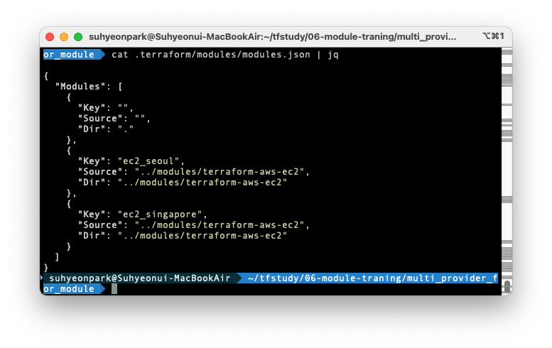 cat .terraform/modules/modules.json | jq #모듈 확인 경로