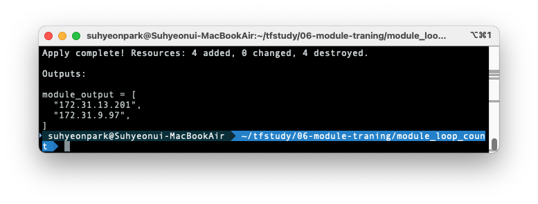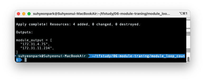 모듈과 반복문이 결합하니 더욱 쉽고 빠르게 리소스를 배포할 수 있다는 점이 실무에서 긍정적으로 작용할 것 같다