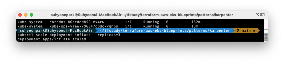 kubectl scale deployment inflate --replicas=3