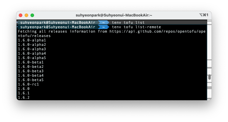 tfenv 가 terraform을 위한 가상환경이라면 tenv는 tofu를 위한 가상환경입니다.