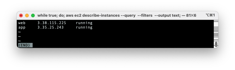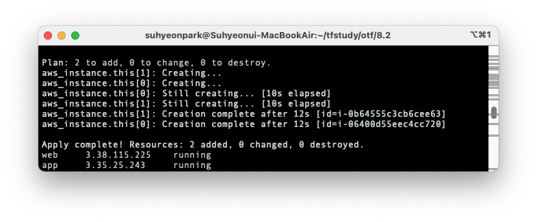 배포를 성공했습니다. 아까와 동일하게 각각 web/app 라벨을 단 인스턴스가 확인됩니다