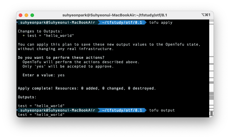 이 코드에서 tofu 명령어를 사용해서 terraform과 마찬가지로 배포합니다