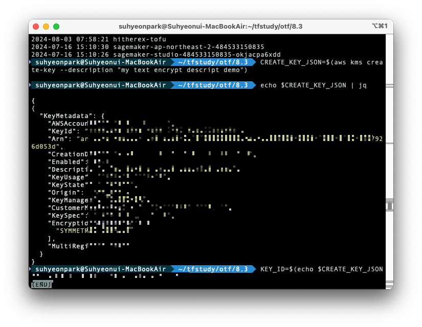 CREATE_KEY_JSON=$(aws kms create-key --description "my text encrypt descript demo")