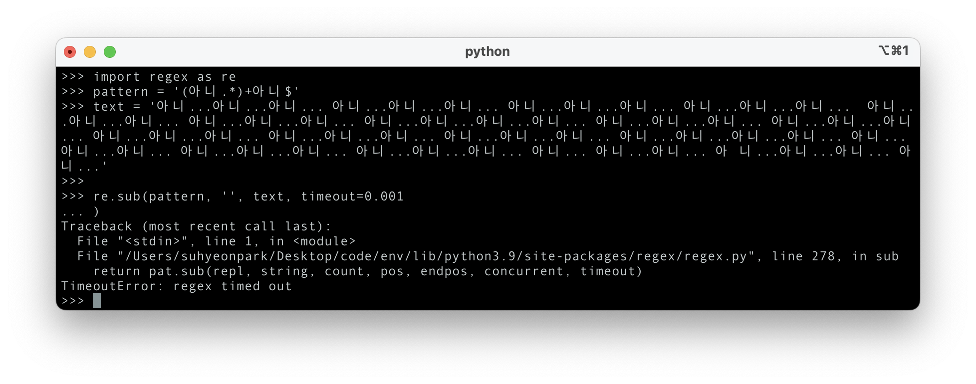 이런 regex 의 무한루프에 대해 알아보고 python 에서 해결방법을 구현해 보았습니다.